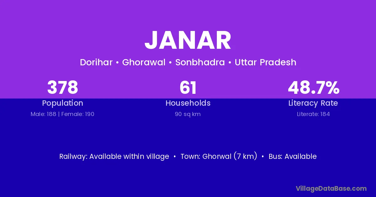Ghorwal (7 km) is the nearest town to Janar village for major economic activities and is located approximately 7 km away.