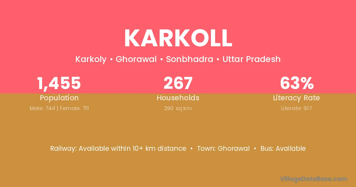 Karkoll village has a total population of 1,455 people, of which 744 are males and 711 are females.