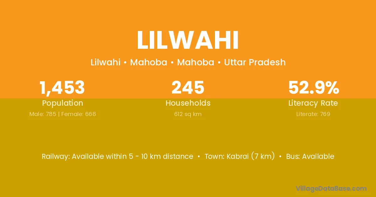 Lilwahi village has a total population of 1,140 people, of which 595 are males and 545 are females.