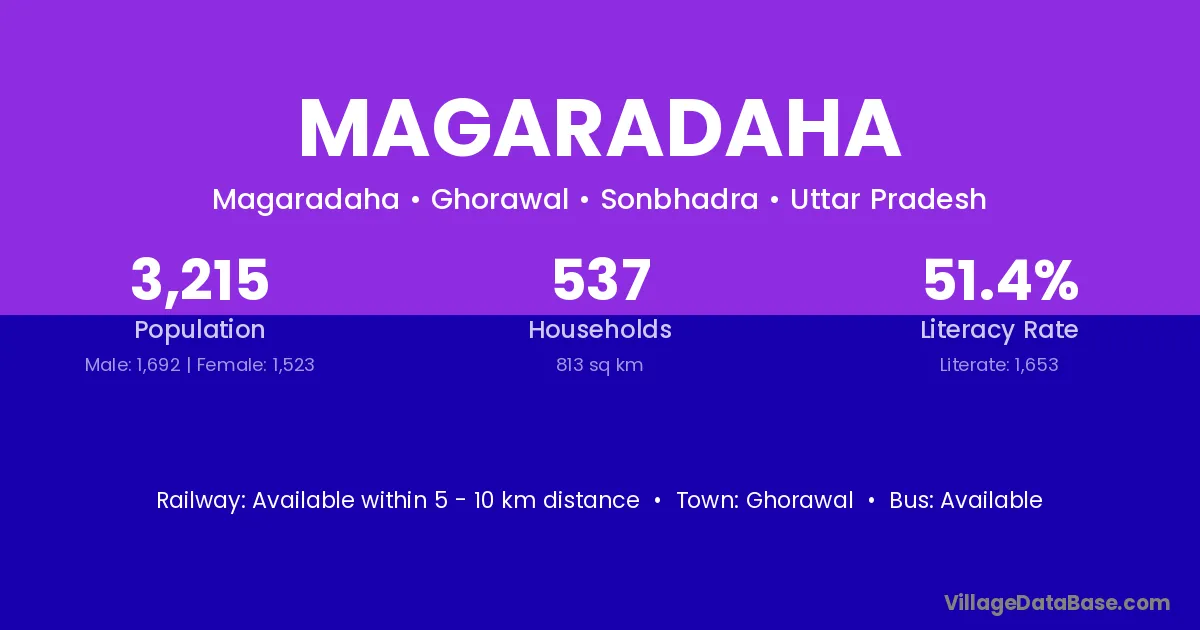 Magaradaha village has a total population of 3,215 people, of which 1,692 are males and 1,523 are females.