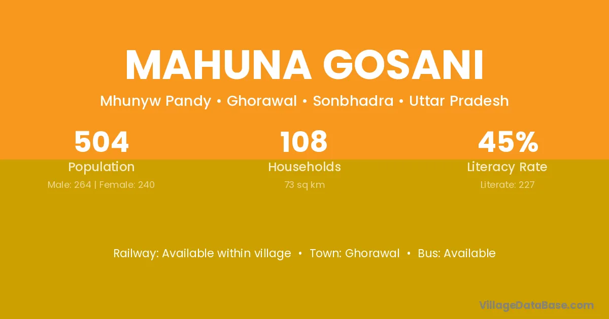 Mahuna Gosani village has a total population of 504 people, of which 264 are males and 240 are females.