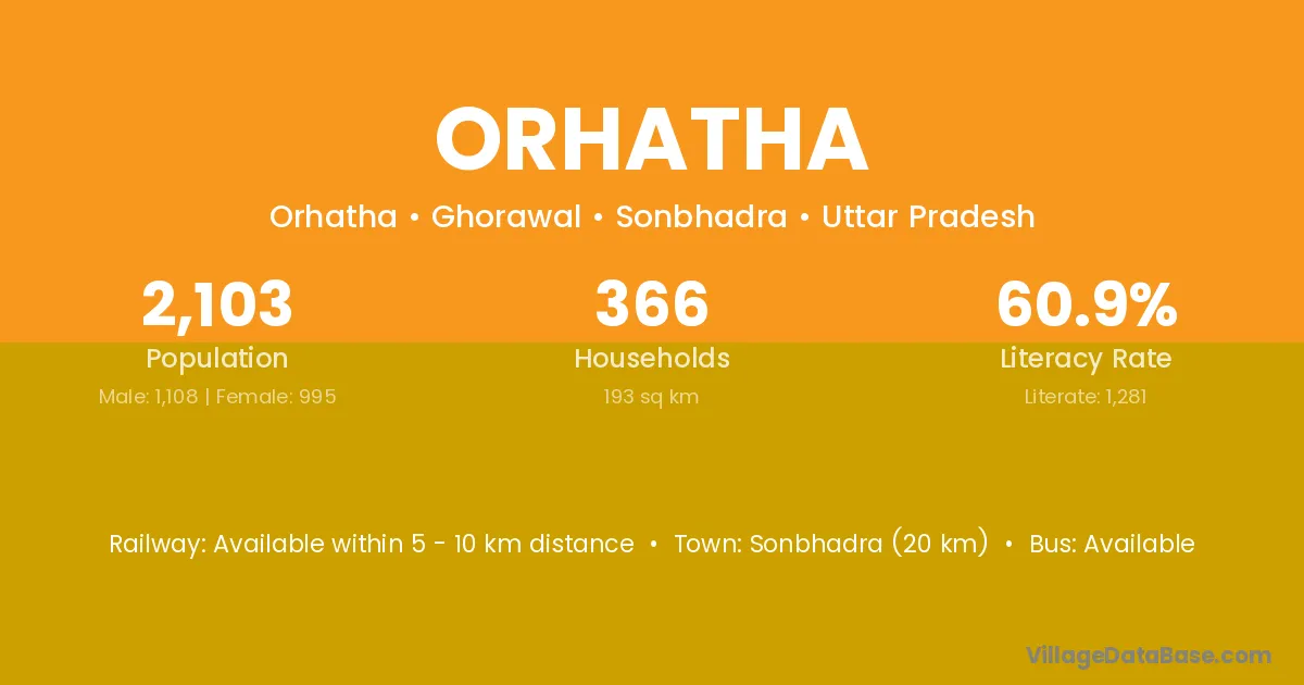 Sonbhadra (20 km) is the nearest town to Orhatha village for major economic activities and is located approximately 20 km away.