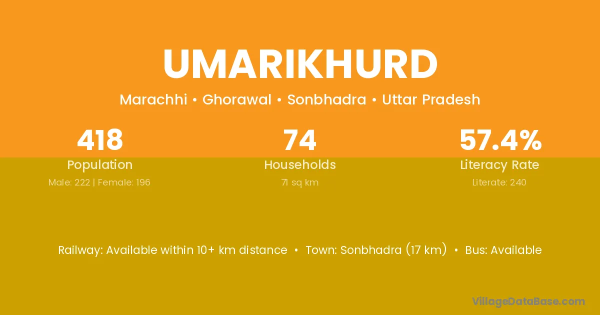 Sonbhadra (17 km) is the nearest town to Umarikhurd village for major economic activities and is located approximately 17 km away.