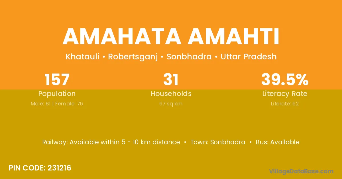 Sonbhadra is the nearest town to Amahata Amahti village for major economic activities