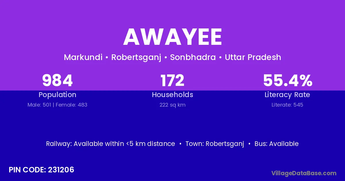 Robertsganj is the nearest town to Awayee village for major economic activities
