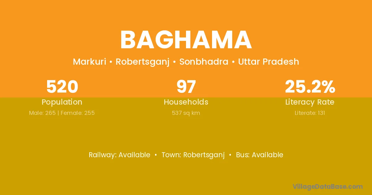 Baghama village has a total population of 520 people, of which 265 are males and 255 are females.