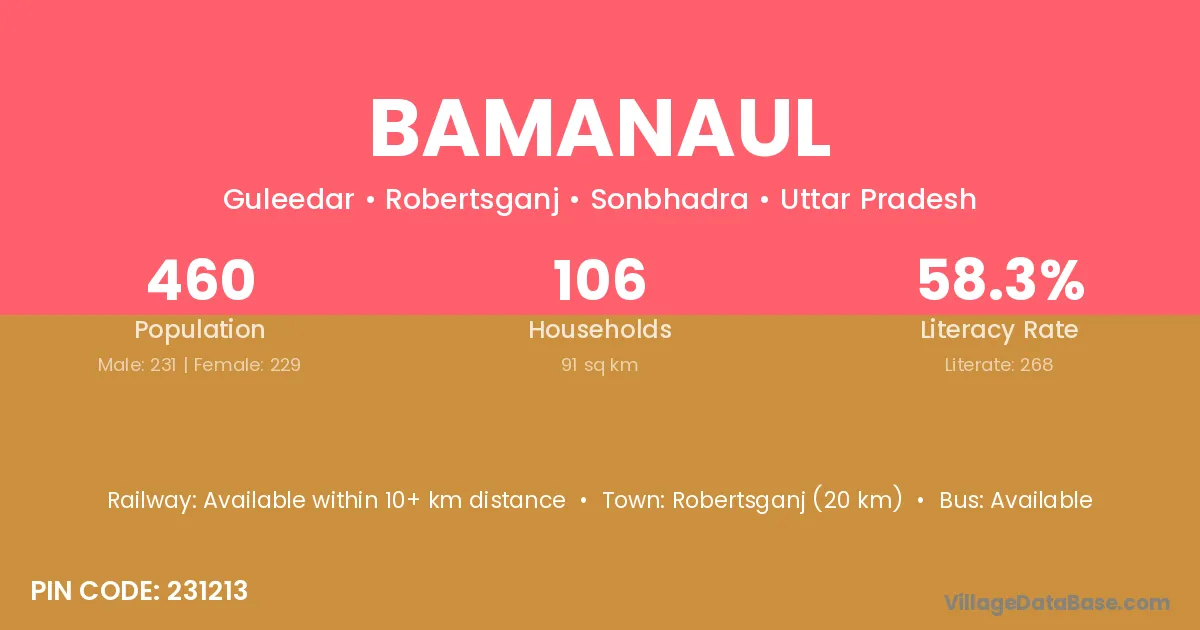 Robertsganj (20 km) is the nearest town to Bamanaul village for major economic activities and is located approximately 20 km away.