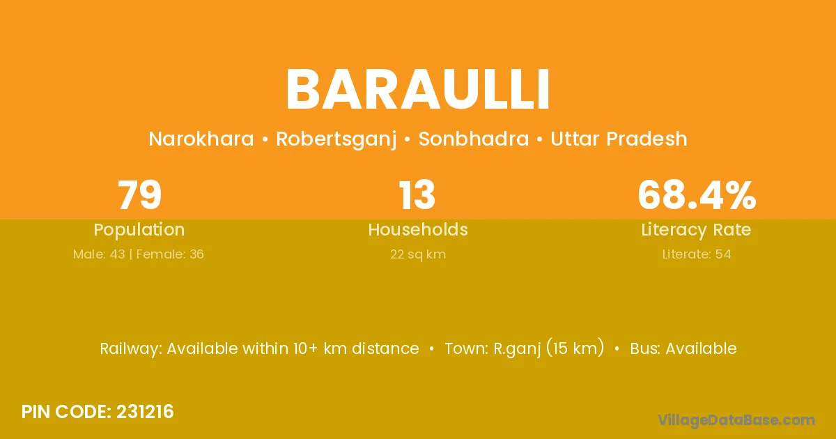 R.ganj (15 km) is the nearest town to Baraulli village for major economic activities and is located approximately 15 km away.