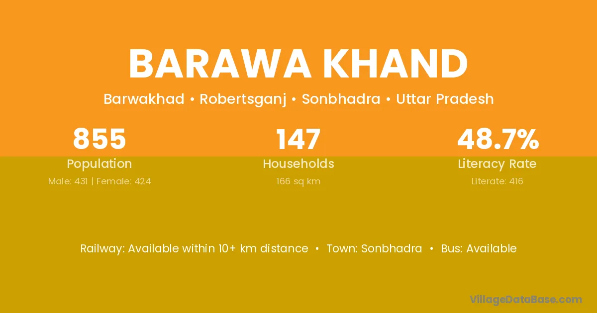 Barawa Khand village has a total population of 855 people, of which 431 are males and 424 are females.