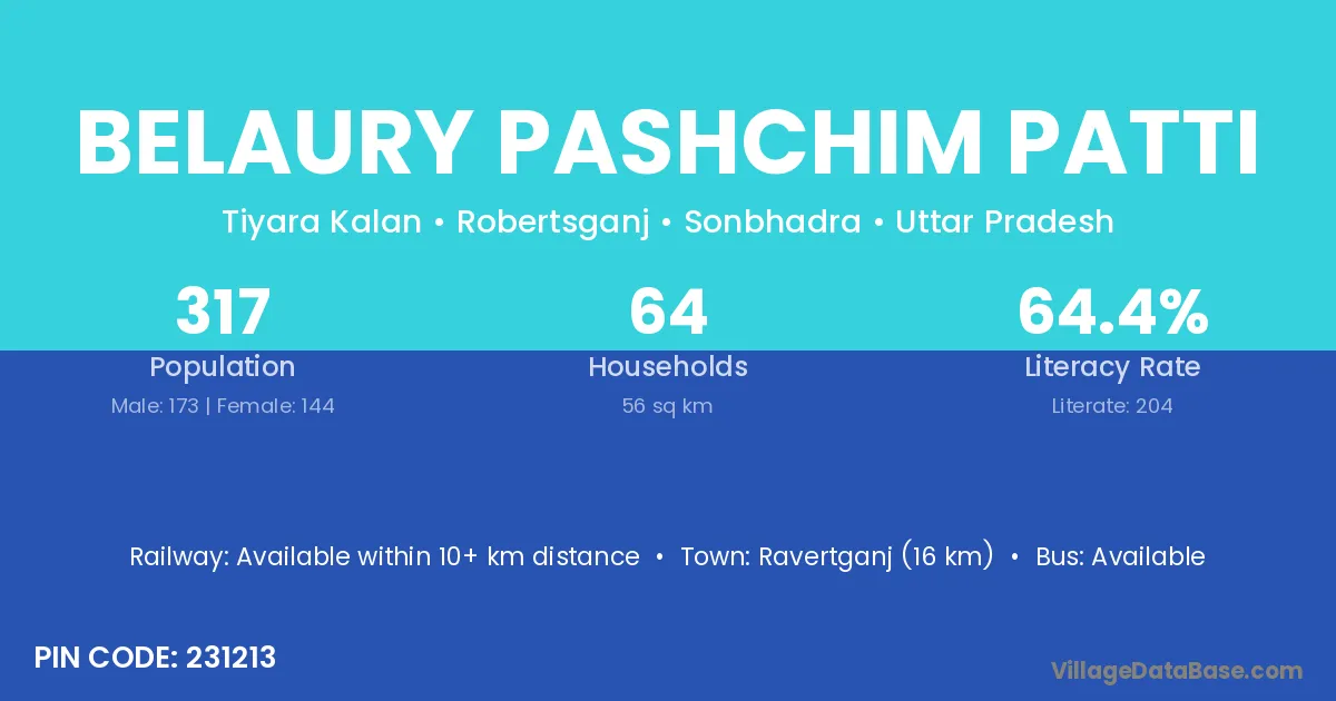 Ravertganj (16 km) is the nearest town to Belaury Pashchim Patti village for major economic activities and is located approximately 16 km away.