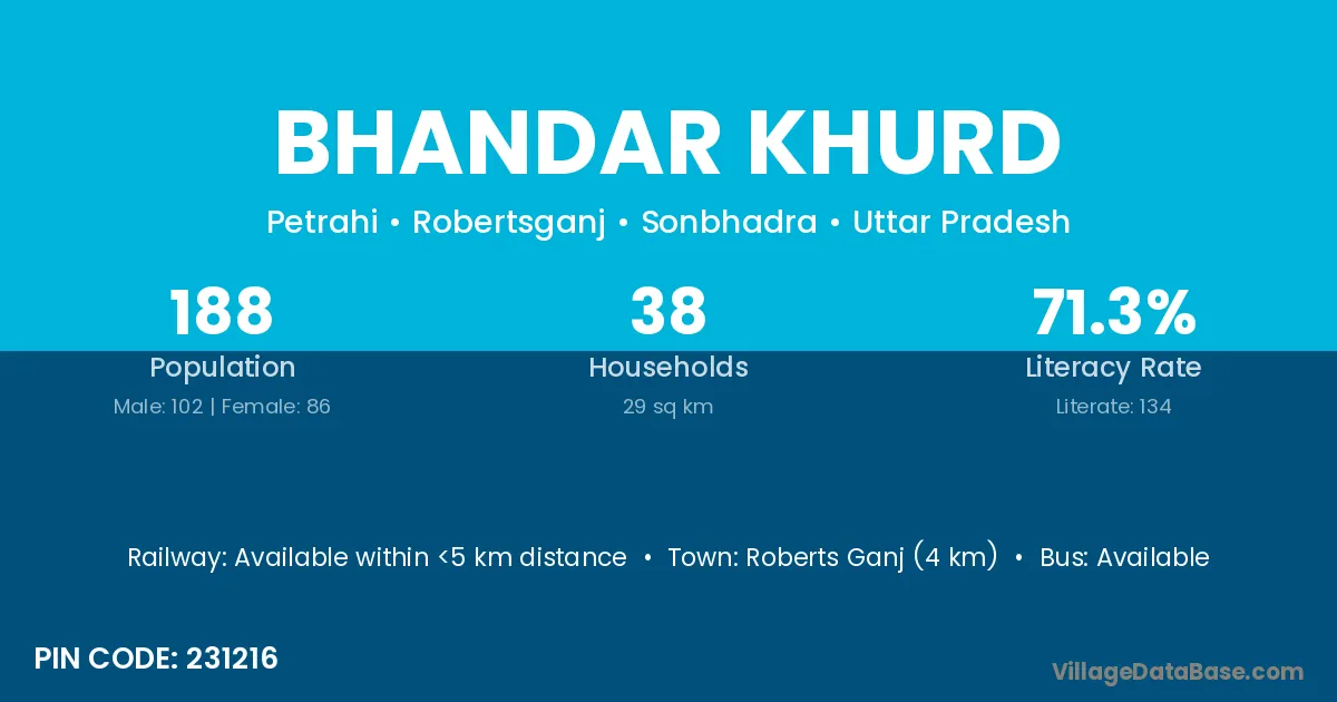 Roberts Ganj (4 km) is the nearest town to Bhandar Khurd village for major economic activities and is located approximately 4 km away.