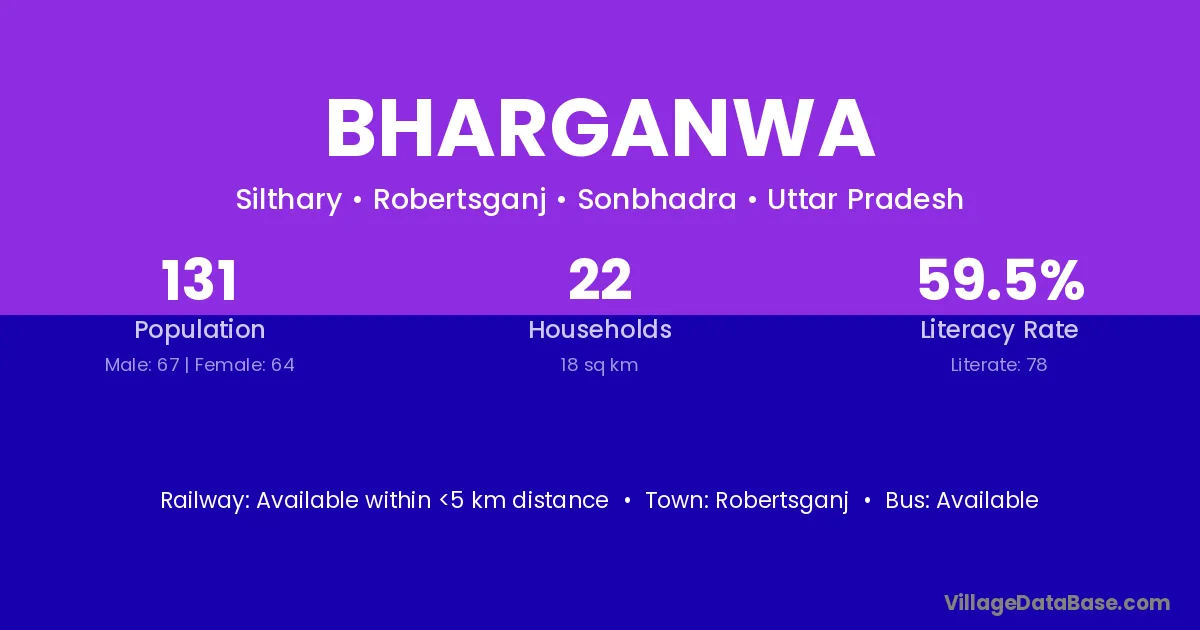 Bharganwa village has a total population of 131 people, of which 67 are males and 64 are females.