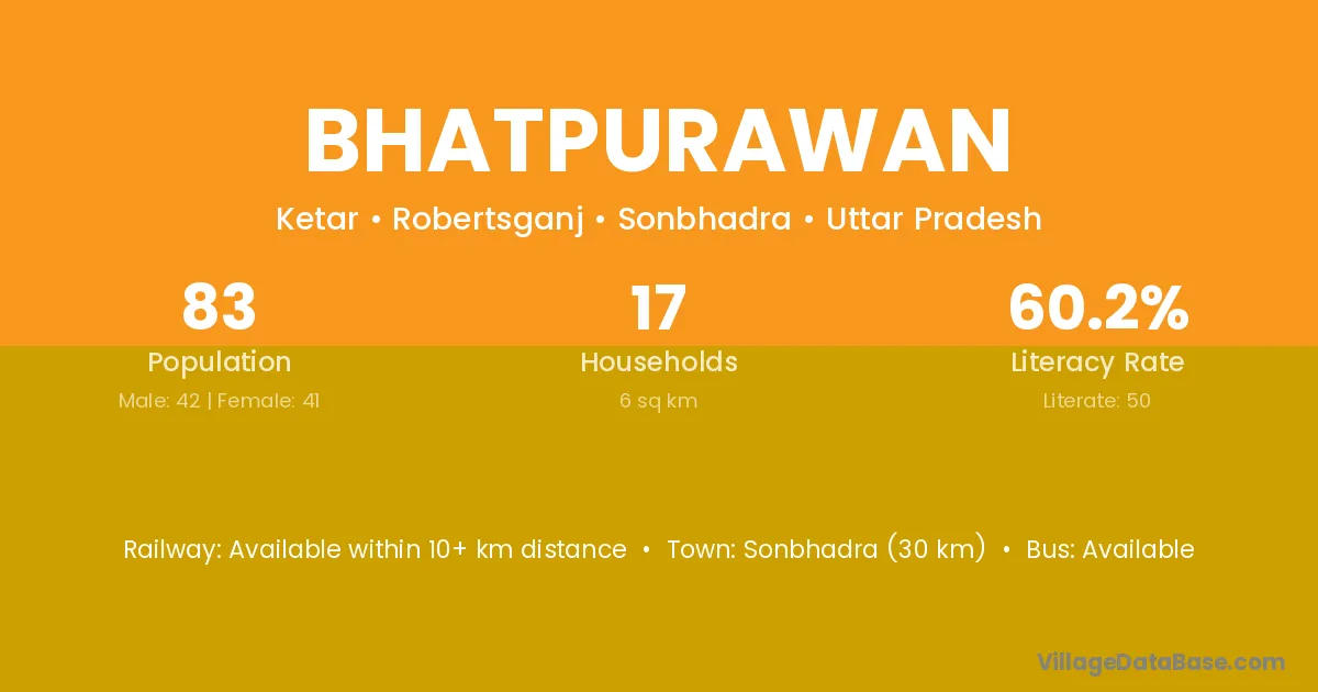 Bhatpurawan village has a total population of 83 people, of which 42 are males and 41 are females.