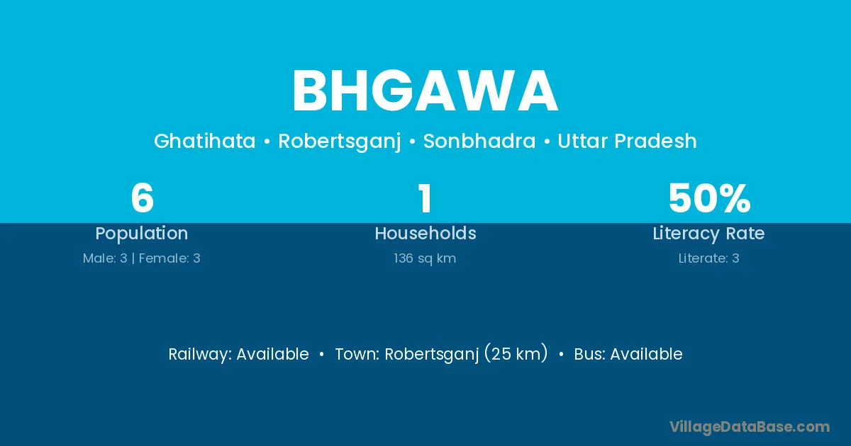 Robertsganj (25 km) is the nearest town to Bhgawa village for major economic activities and is located approximately 25 km away.