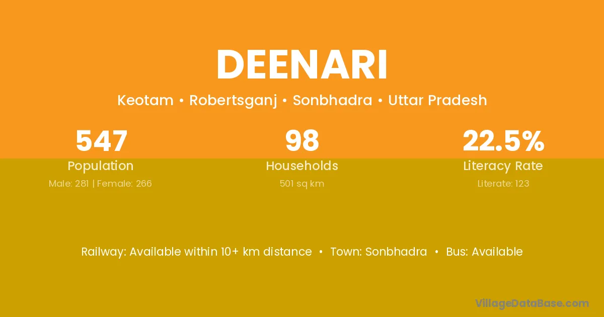 Sonbhadra is the nearest town to Deenari village for major economic activities