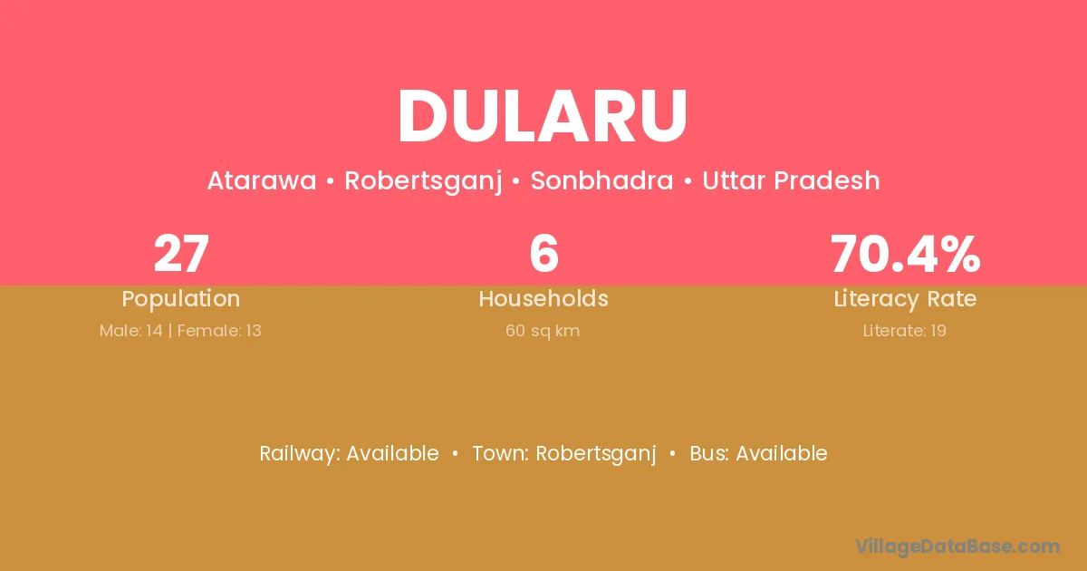 Robertsganj is the nearest town to Dularu village for major economic activities