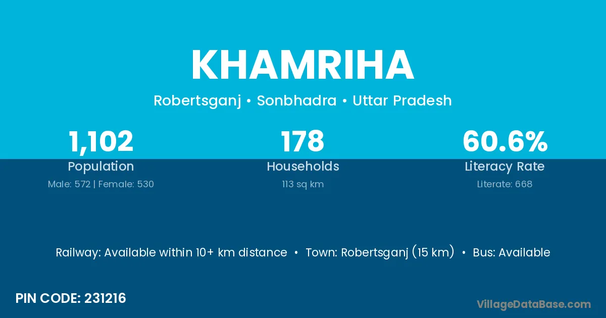 Robertsganj (15 km) is the nearest town to Khamriha village for major economic activities and is located approximately 15 km away.