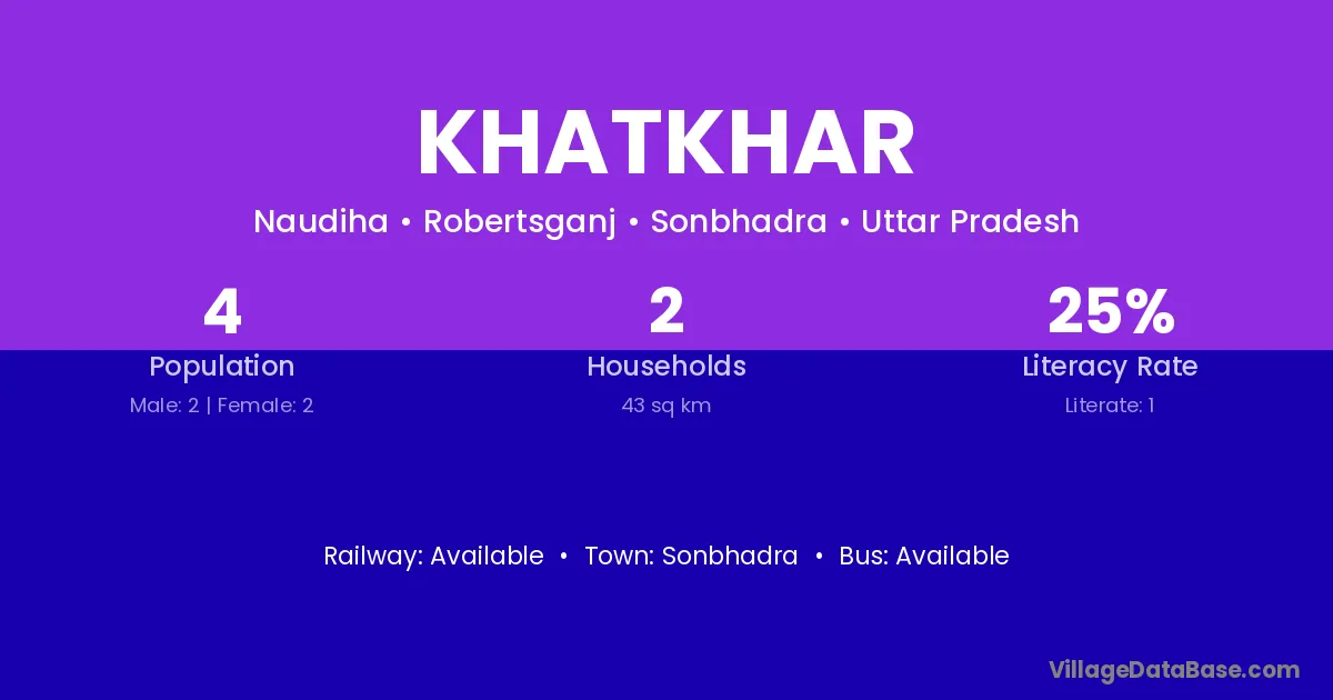 Khatkhar village has a total population of 4 people, of which 2 are males and 2 are females.