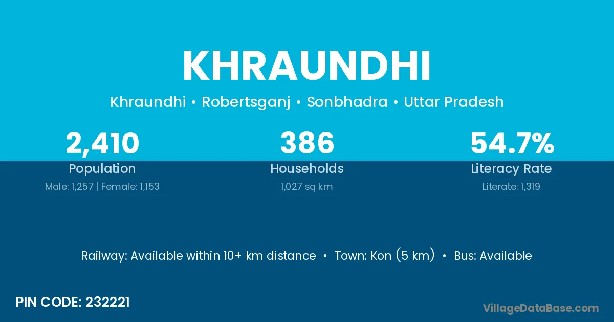 Khraundhi village has a total population of 2,410 people, of which 1,257 are males and 1,153 are females.