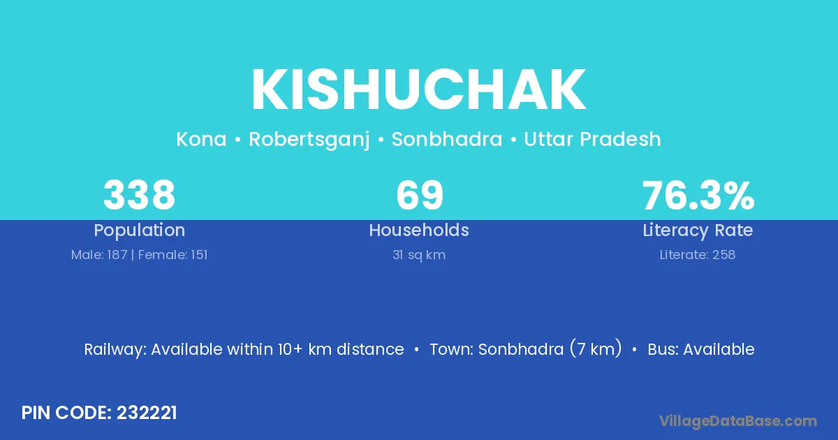 Sonbhadra (7 km) is the nearest town to Kishuchak village for major economic activities and is located approximately 7 km away.