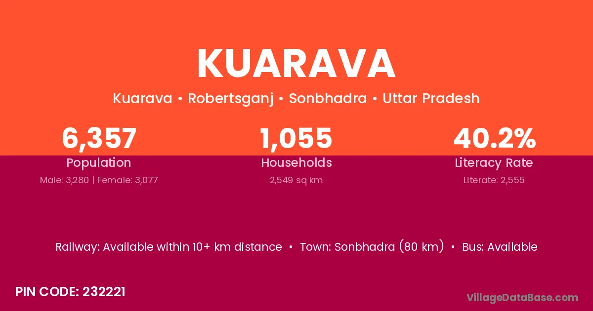 Sonbhadra (80 km) is the nearest town to Kuarava village for major economic activities and is located approximately 80 km away.
