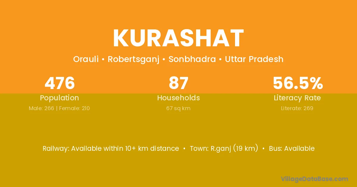 Kurashat village has a total population of 476 people, of which 266 are males and 210 are females.