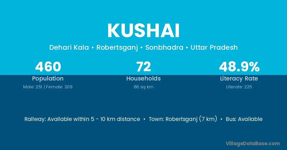 Robertsganj (7 km) is the nearest town to Kushai village for major economic activities and is located approximately 7 km away.