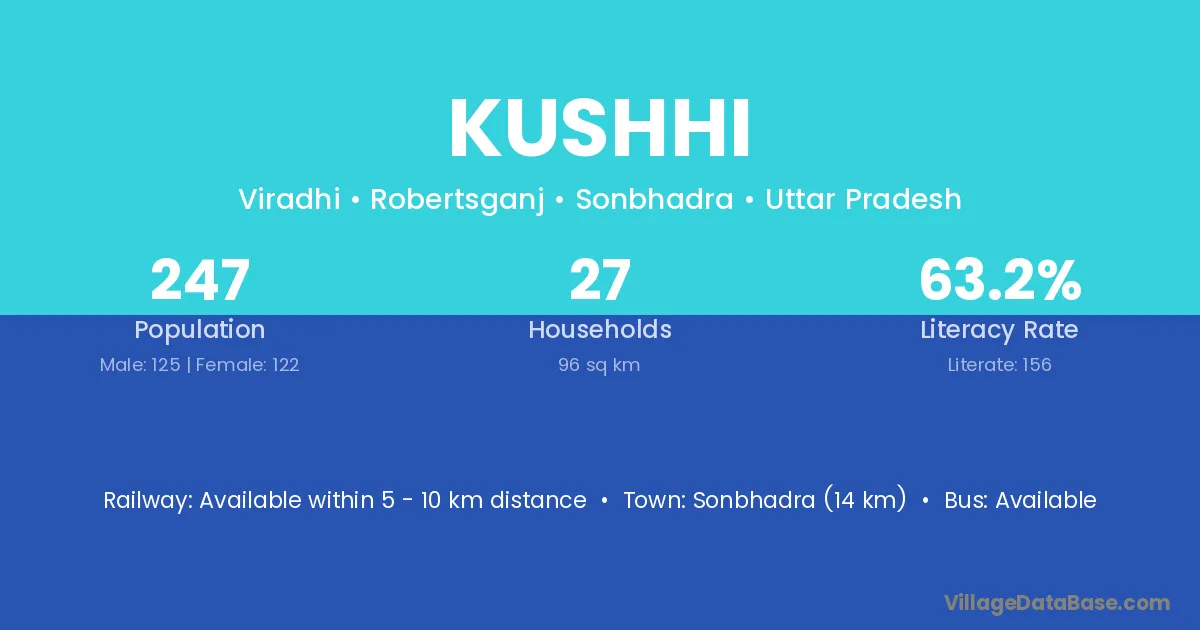 Sonbhadra (14 km) is the nearest town to Kushhi village for major economic activities and is located approximately 14 km away.
