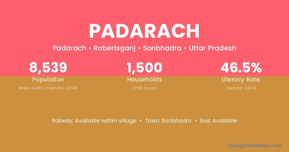 Sonbhadra is the nearest town to Padarach village for major economic activities