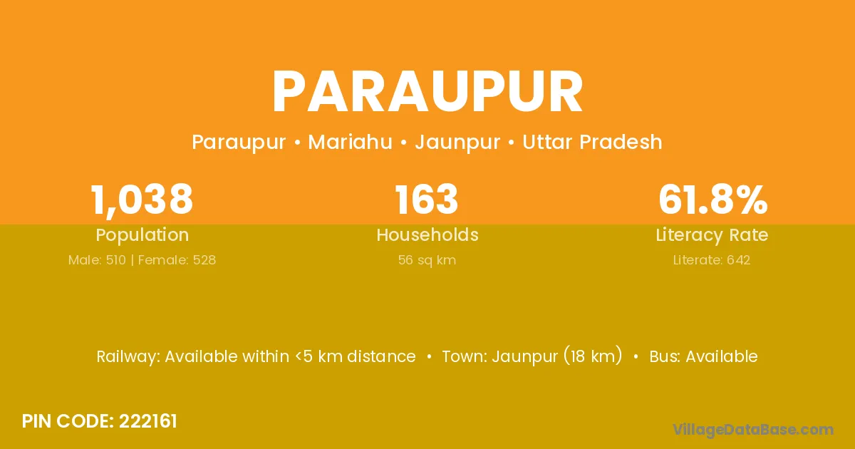 The literacy rate of Paraupur village is 72.22%. Male literacy stands at 77.78% and female literacy at 66.67%.
