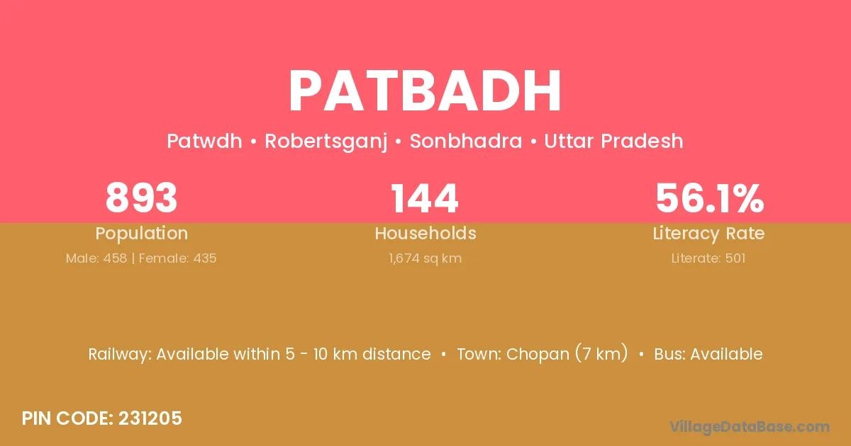 Chopan (7 km) is the nearest town to Patbadh village for major economic activities and is located approximately 7 km away.
