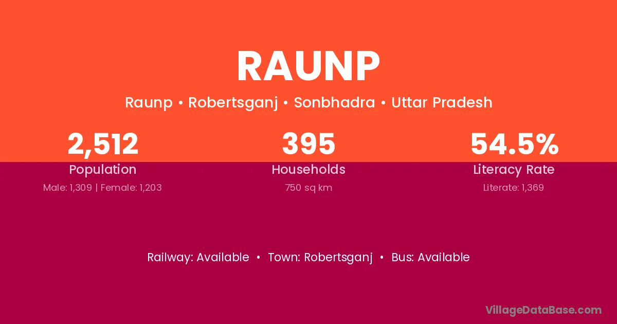 Robertsganj is the nearest town to Raunp village for major economic activities