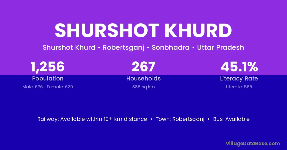 Shurshot Khurd village has a total population of 1,256 people, of which 626 are males and 630 are females.