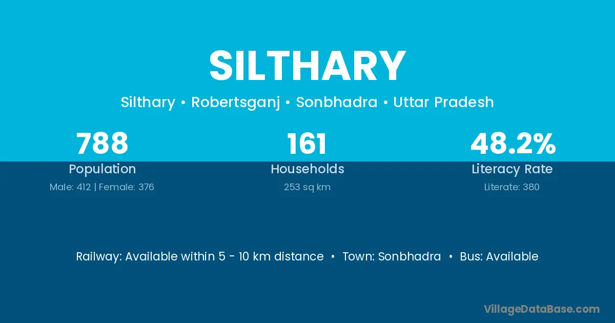 Sonbhadra is the nearest town to Silthary village for major economic activities