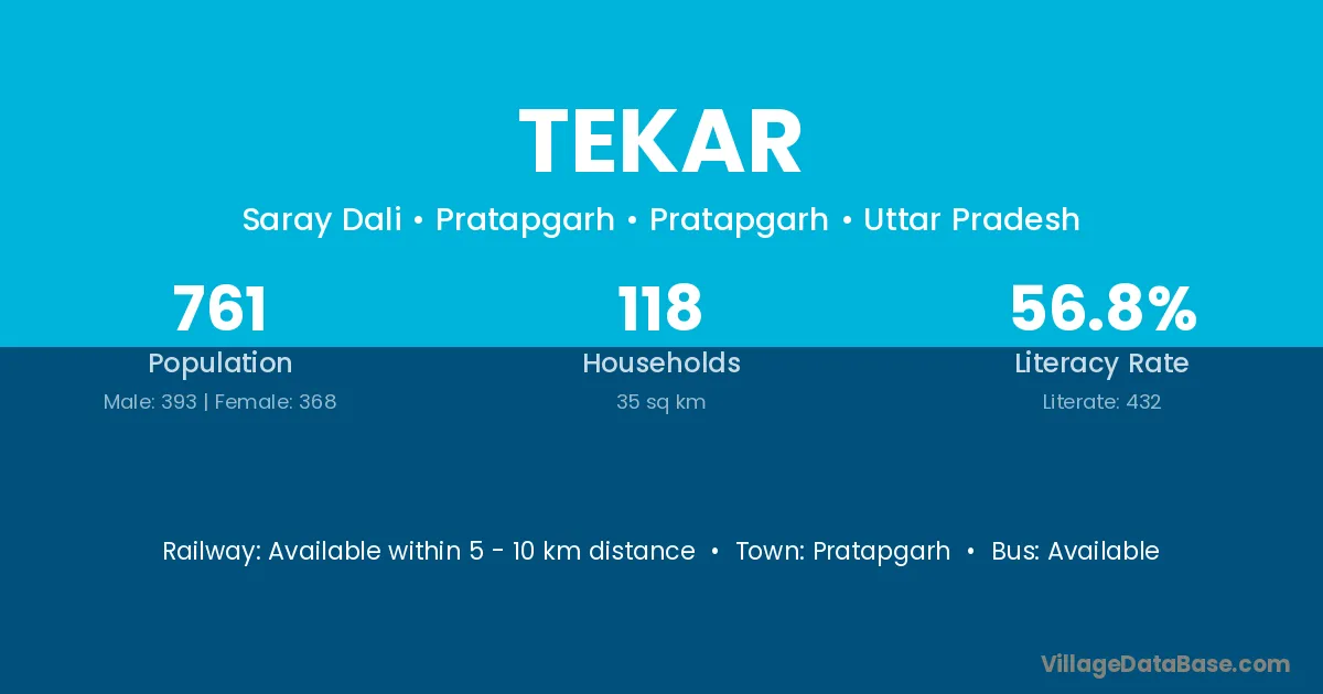 R.ganj (16 km) is the nearest town to Tekar village for major economic activities and is located approximately 16 km away.
