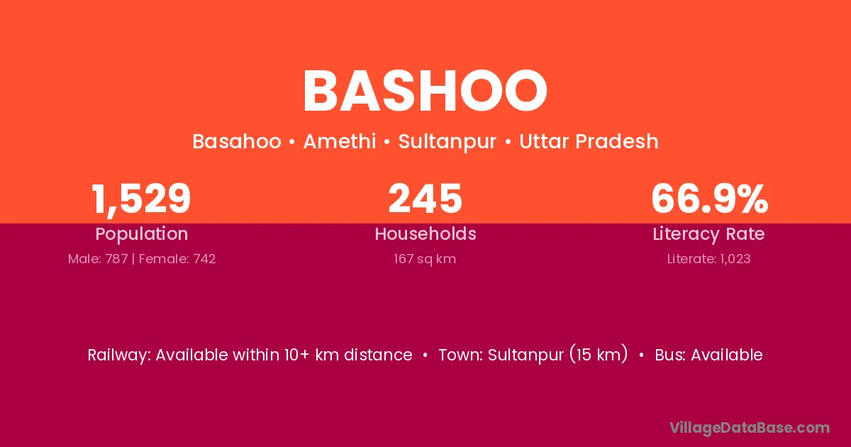 Sultanpur (15 km) is the nearest town to Bashoo village for major economic activities and is located approximately 15 km away.