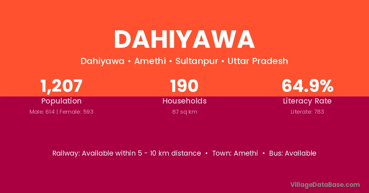 Dahiyawa village has a total population of 1,207 people, of which 614 are males and 593 are females.