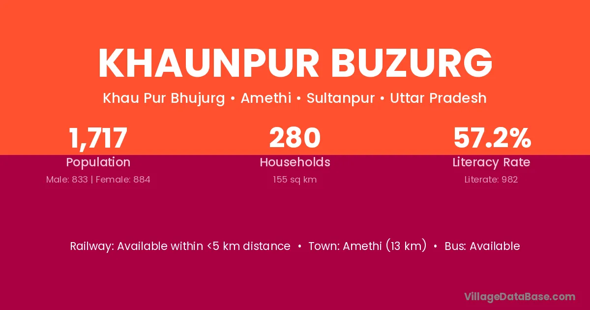 Amethi (13 km) is the nearest town to Khaunpur Buzurg village for major economic activities and is located approximately 13 km away.