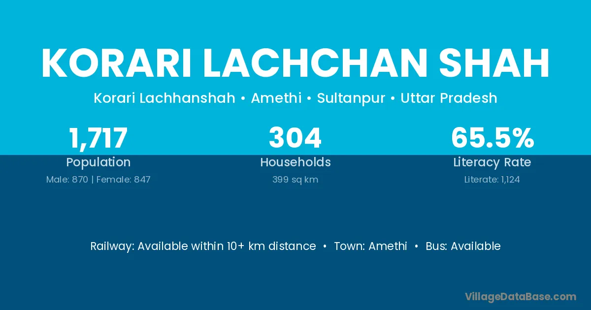 Korari Lachchan Shah village has a total population of 1,717 people, of which 870 are males and 847 are females.