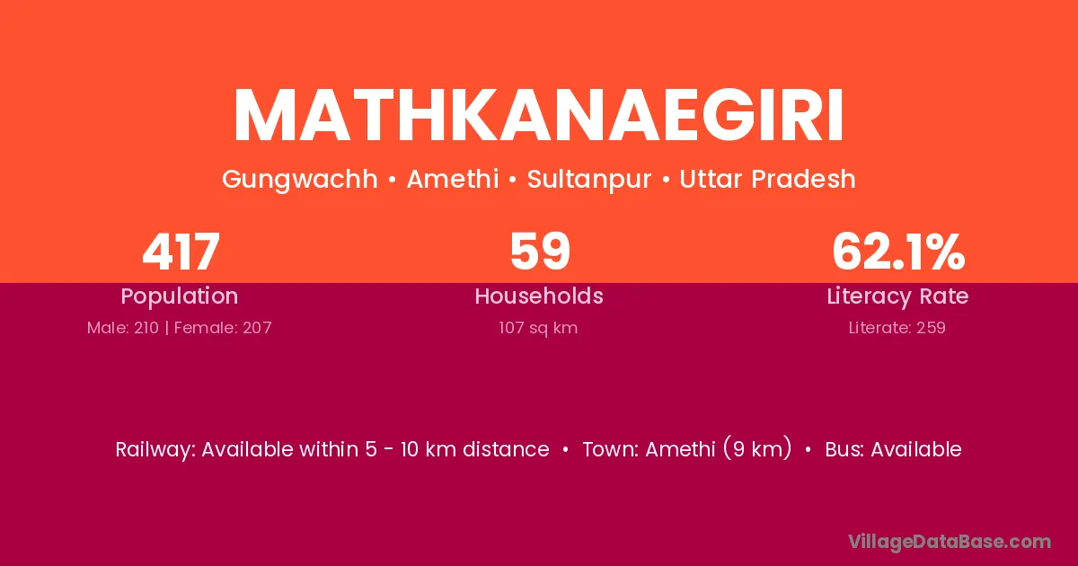 Amethi (9 km) is the nearest town to Mathkanaegiri village for major economic activities and is located approximately 9 km away.