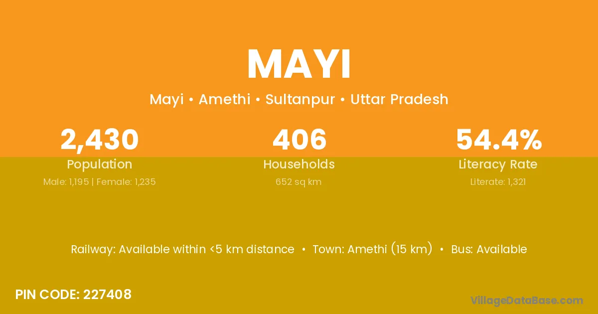 Amethi (15 km) is the nearest town to Mayi village for major economic activities and is located approximately 15 km away.