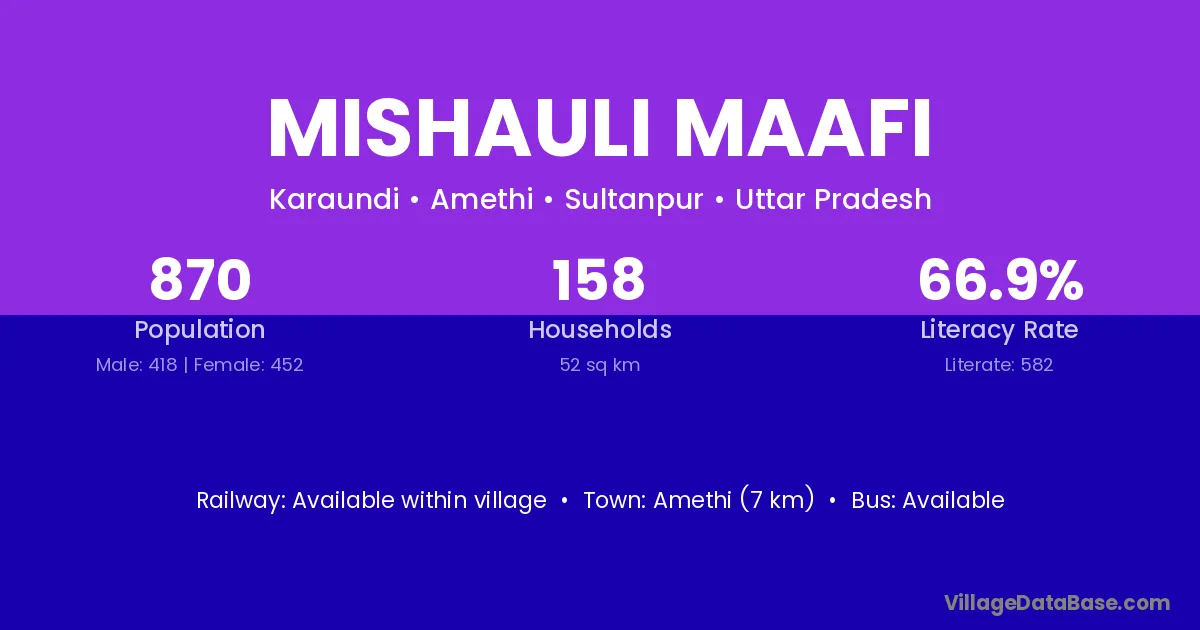 Mishauli Maafi village has a total population of 870 people, of which 418 are males and 452 are females.