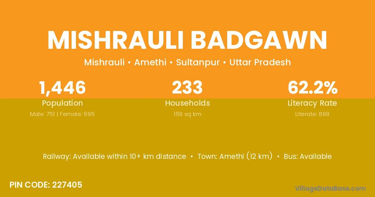 Amethi (12 km) is the nearest town to Mishrauli Badgawn village for major economic activities and is located approximately 12 km away.