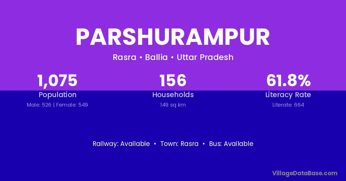The literacy rate of Parshurampur village is 61.27%. Male literacy stands at 75.52% and female literacy at 49.42%.
