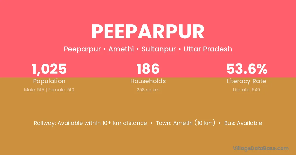 Amethi (10 km) is the nearest town to Peeparpur village for major economic activities and is located approximately 10 km away.