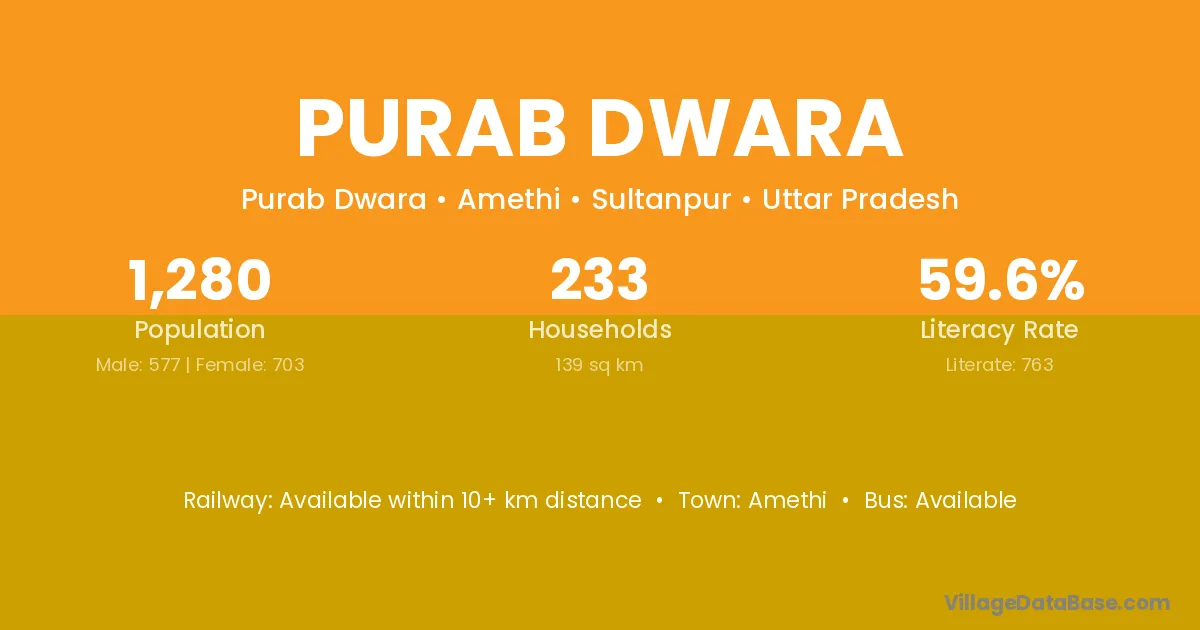 Amethi is the nearest town to Purab Dwara village for major economic activities