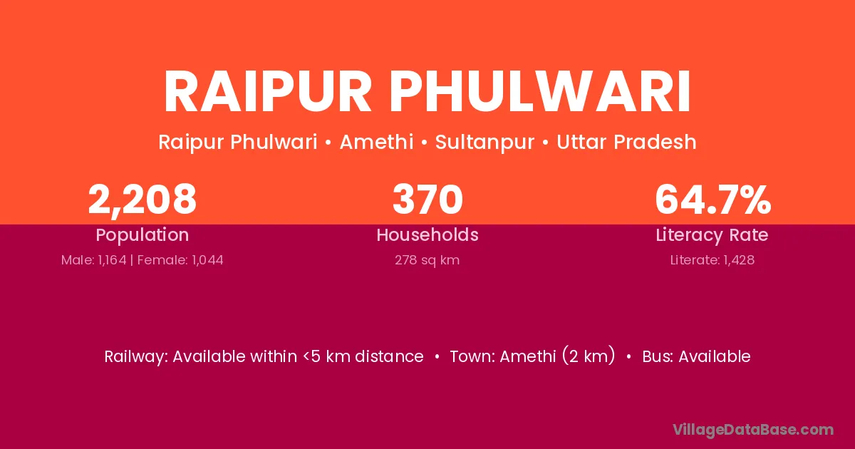 Amethi (2 km) is the nearest town to Raipur Phulwari village for major economic activities and is located approximately 2 km away.