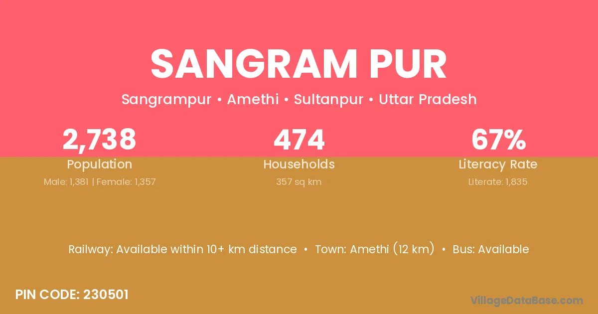Amethi (12 km) is the nearest town to Sangram Pur village for major economic activities and is located approximately 12 km away.