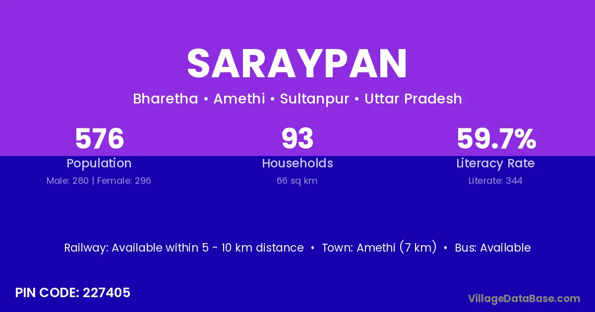 Amethi (7 km) is the nearest town to Saraypan village for major economic activities and is located approximately 7 km away.
