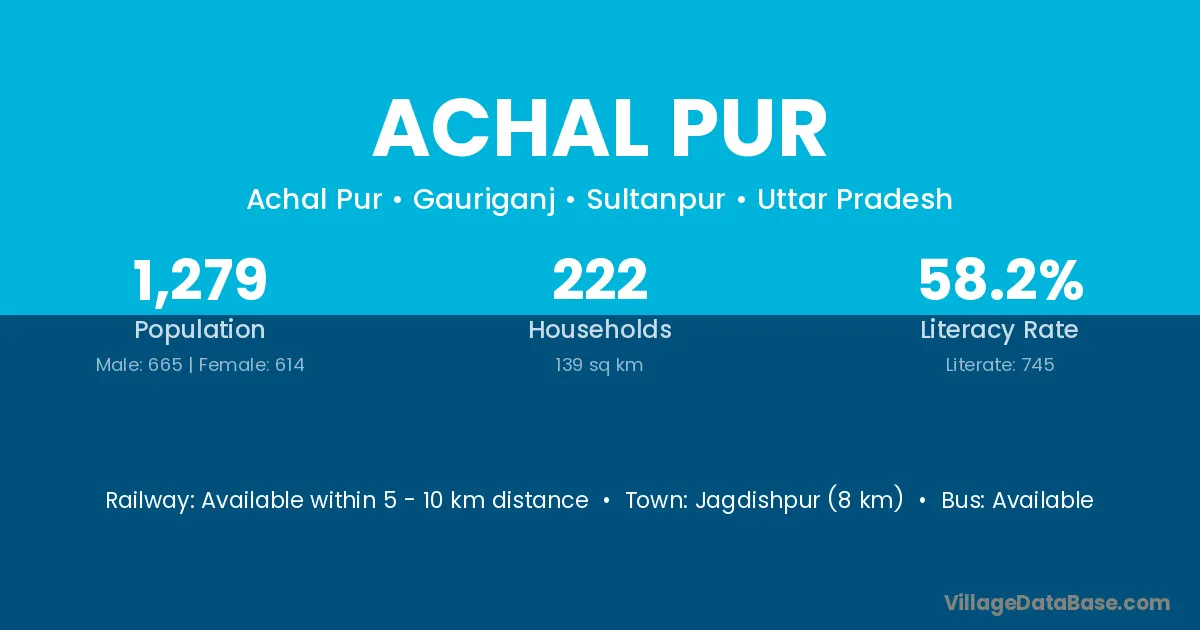 Jagdishpur (8 km) is the nearest town to Achal Pur village for major economic activities and is located approximately 8 km away.
